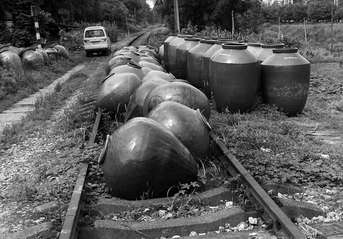 曾經(jīng)的煤炭運輸鐵路專線而今成為陶瓷廠的臨時堆放場