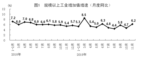 11月份,全國規(guī)模以上工業(yè)增加值同比增長(zhǎng)6.2%,增速比上月加快1.5個(gè)百分點(diǎn)。1-11月份,全國規(guī)模以上工業(yè)增加值增長(zhǎng)5.6%,增速與1-10月份持平。分經(jīng)濟(jì)類型看,11月份,國有控股企業(yè)增加值增長(zhǎng)3.7%;股份制企業(yè)增長(zhǎng)7.0%,外商及港澳臺(tái)商投資企業(yè)增長(zhǎng)3.2%;私營(yíng)企業(yè)增長(zhǎng)8.9%,增速比上月加快3.5個(gè)百分點(diǎn)。分三大門類看,采礦業(yè)增加值增長(zhǎng)5.7%,制造業(yè)增長(zhǎng)6.3%,電力、熱力、燃?xì)饧八a(chǎn)和供應(yīng)業(yè)增長(zhǎng)6.7%。高技術(shù)制造業(yè)、裝備制造業(yè)增加值分別增長(zhǎng)8.9%、8.5%,分別比規(guī)模以上工業(yè)快2.7、2.3個(gè)百分點(diǎn);其中醫(yī)療儀器設(shè)備及儀器儀表制造業(yè)、電子及通信設(shè)備制造業(yè)分別增長(zhǎng)12.6%和10.8%,分別比規(guī)模以上工業(yè)快6.4和4.6個(gè)百分點(diǎn)。太陽能電池和集成電路產(chǎn)量分別增長(zhǎng)23.0%和18.2%。汽車產(chǎn)量增長(zhǎng)3.7%。制造業(yè)采購經(jīng)理指數(shù)(PMI)分項(xiàng)指數(shù)中,生產(chǎn)指數(shù)、新訂單指數(shù)和供應(yīng)商配送時(shí)間指數(shù)分別為52.6%、51.3%和50.5%,均高于臨界點(diǎn)且均比上月有所回升。制造業(yè)生產(chǎn)經(jīng)營(yíng)活動(dòng)預(yù)期指數(shù)為54.9%,位于較高景氣區(qū)間。